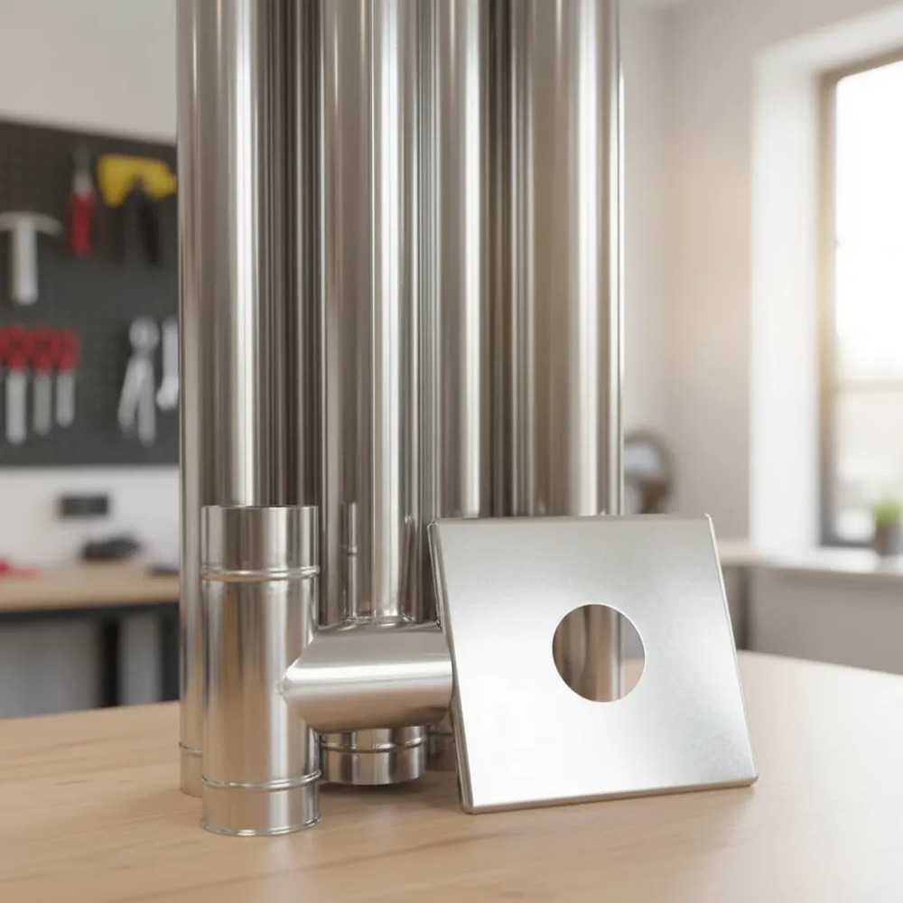 Kit completo de chimenea en acero inoxidable Ø 80 mm, diseñado para estufas a pellet con salida por techo.